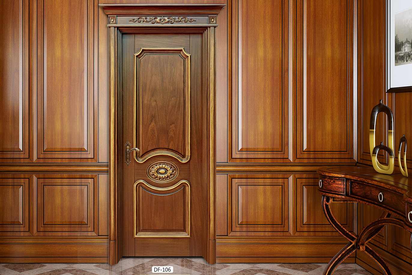 廠家直銷愉X-4061平開雕花仿古實(shí)木烤漆門